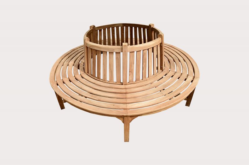 A teak tree seat. Two halves make up this wonderful garden bench. A really super feature. Internal diameter for trunk: 93cm / three feet