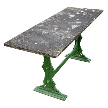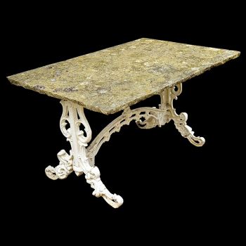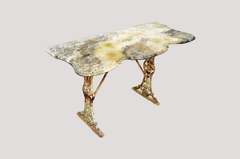 Original 19th century console (or serving) table. Distressed marble top on cast iron base. A perfect addition for an orangery or glass house. Late 19th century.