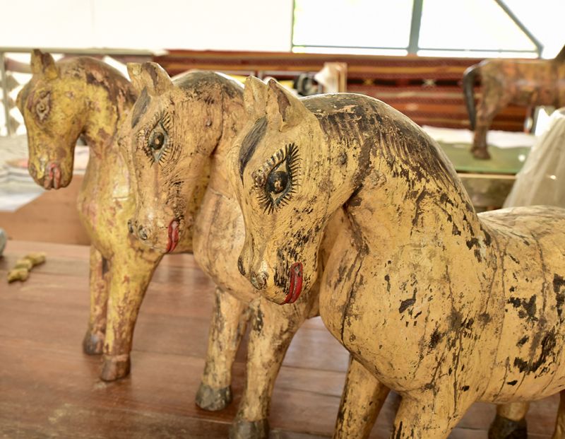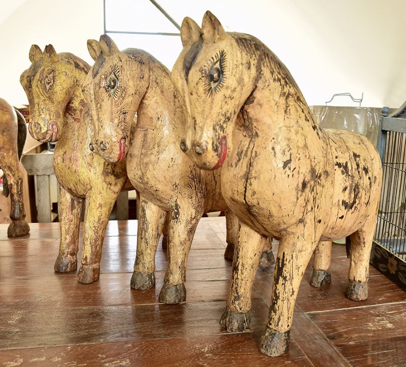 Hand turned decorative Indian stallions. We have a one-off slightly larger horse and three medium sized horses.