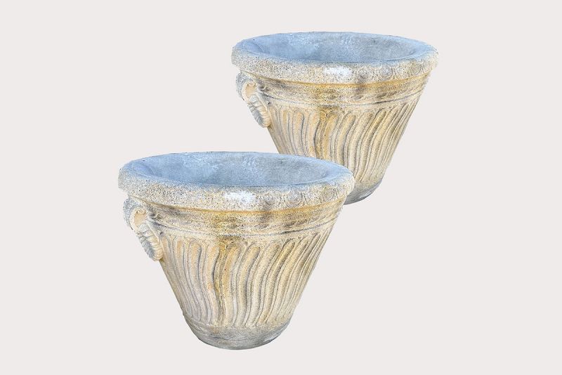 Composition stone Vincenza-style tree pots. Wonderfully decorative. They look fabulous as a pair. We sell them individually. Please enquire.