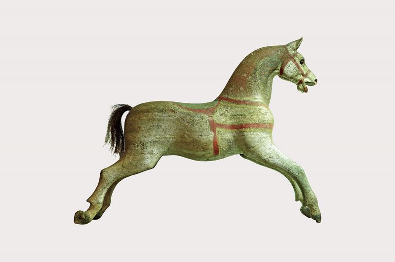 A hand painted English wooden 'Galloper' horse with real horse hair tail, originally on a carousel. Makes a fabulously original ornament.