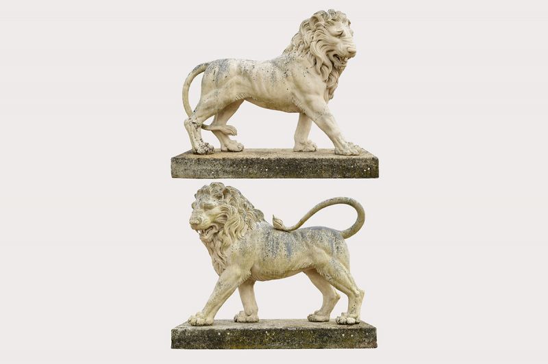 The lions are on impressive 100cm x W 75cm x H 18cm composition stone bases.