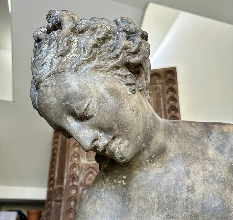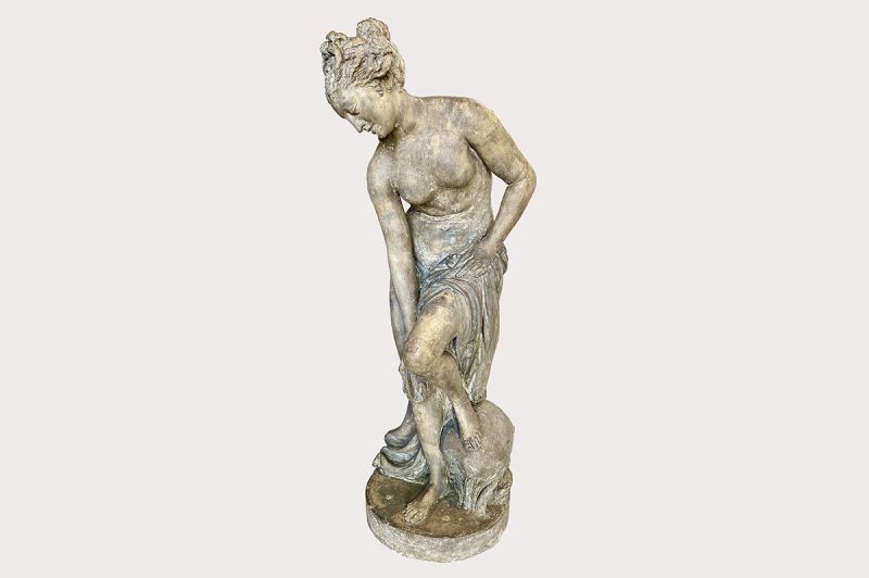 An immaculate representation of a French, 19th century, life-size figure of Venus au Bain after Christophe-Gabriel Allegrain. Remarkable patination accumulated over 150 years.