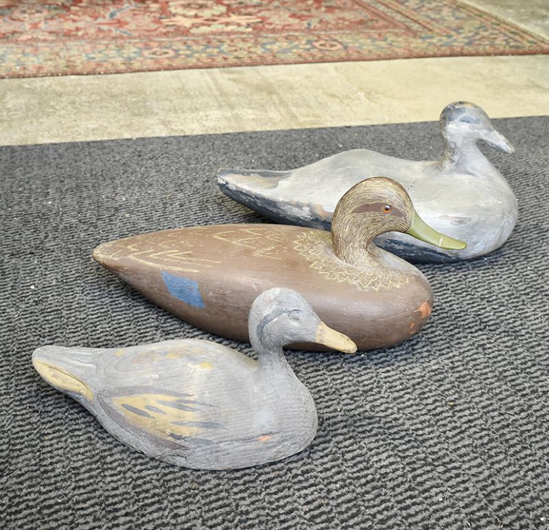 A rather lovely trio of carved wooden ducks. The front duck is £ 120 The middle duck is early 20th, £ 180 The one in the back is also £ 180. The set we can sell for a special price. Please enquire.