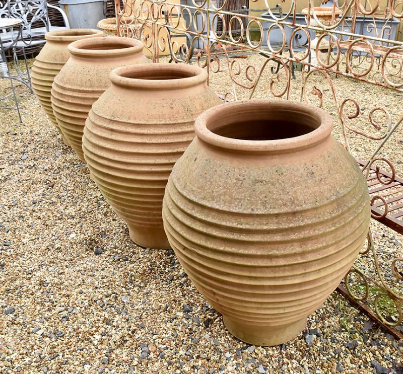 Four beautifully weathered terracotta coil pots.