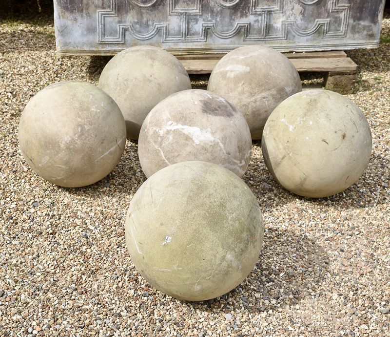 A collection of six solid limestone balls, ideal for keeping drivers off a lawn or verge!