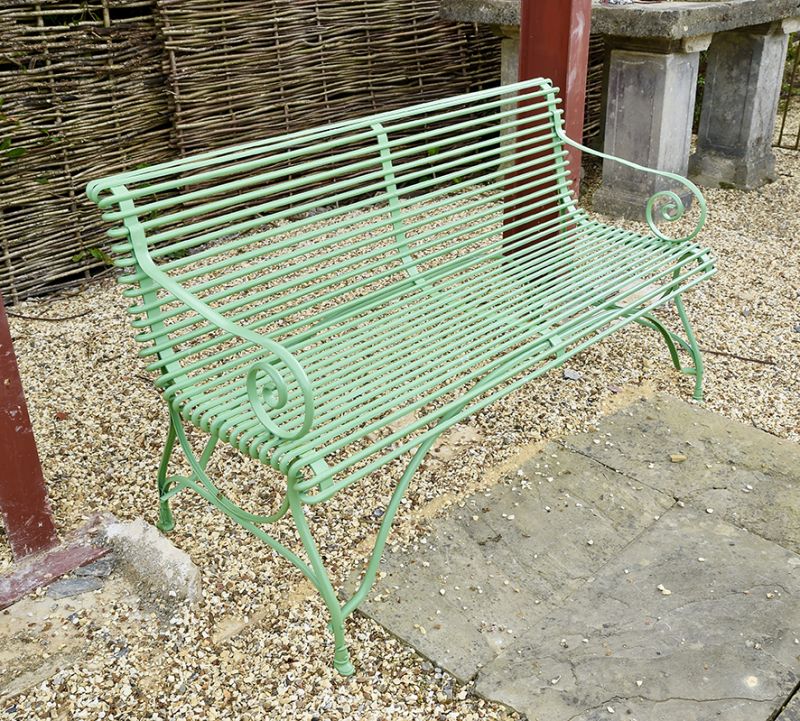 Our Arras style garden seat professionally sprayed in a rich 'Fresh' green. A real beauty.