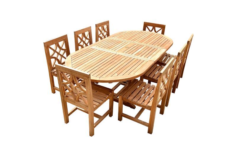 Our 2.4m extendable table seats eight comfortably. Known as the "King of the Woods" teak is both sturdy and durable. Good stocks of the 2.4m. Chairs £ 185 each. GA2854-40.