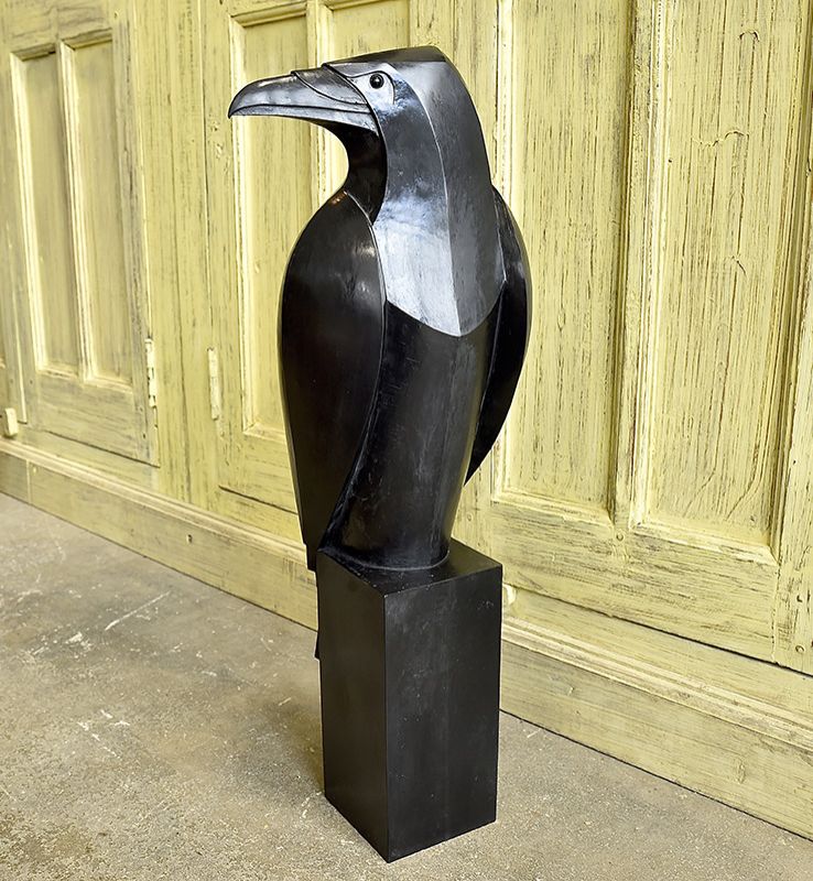 Striking sculpture of a Raven, by Paul Harvey. In cold cast black metals.