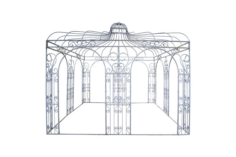 Square metal arbour, featuring wonderful scroll design. Perfect for growing vines and roses. Please enquire.
