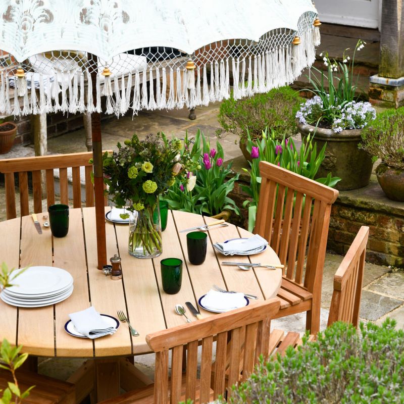 Round oak tables of a very high quality. Handmade and beautiful used inside or out.