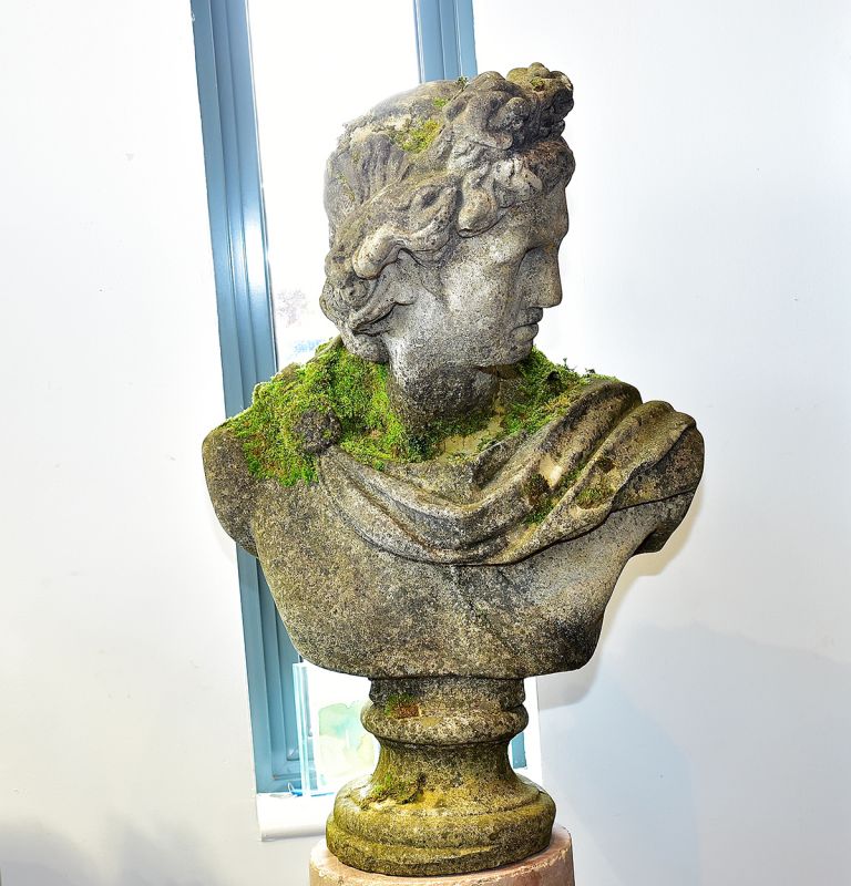 Bust of Apollo Belvedere made out of composition stone, an elegant form. We have two in stock, please enquire and we can send individual photographs.