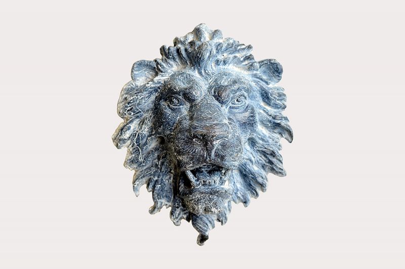 Beautifully hand crafted in Wiltshire this traditional lion mask has his mouth open and shows his magnificent teeth. Out of stock. We have one on order. Could be drilled and used as a water feature.