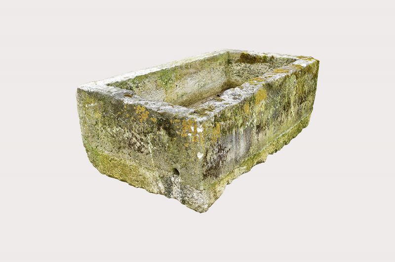 A very wide carved French farm trough with straight sides. Beautifully weathered. 18th century.