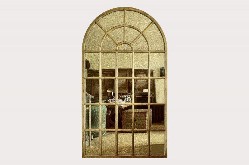 Twenty nine antique mirror panes form this stunning wooden mirror. Almost nine feet in height and just over five foot wide! We absolutely love it!