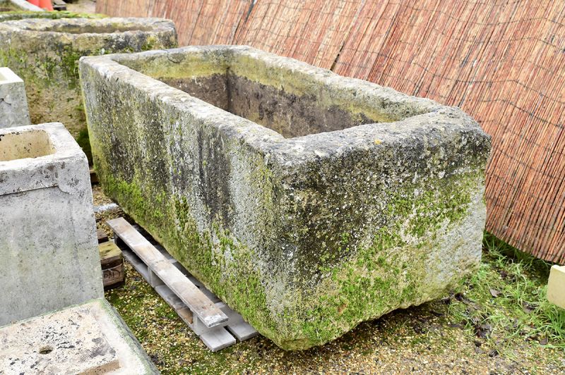 Hand carved French Limestone trough. 18th century. Great scale.