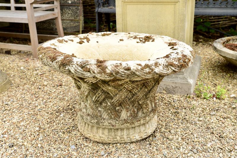 Lattice work composition planter with wonderful scale for planting & plenty of moss.
