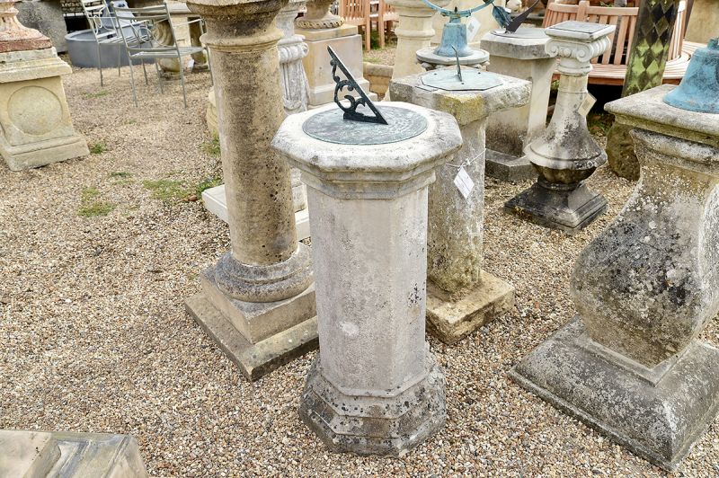 Bronze horizontal sundial from the 19th century surmounted on a fine octagonal Portland Stone pedestal. Ideal as a centrepiece feature in the garden.