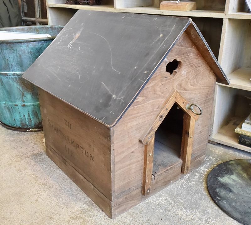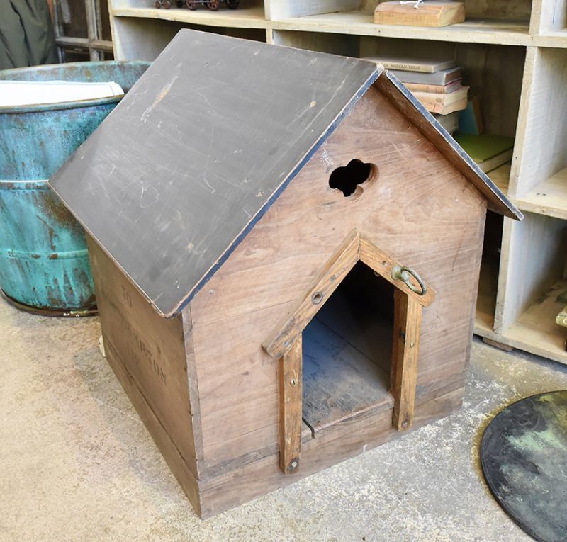 Any small to medium sized dog would be happy to be confined to this 'dog house'. Made from a packing case, it has been wired so your pooch can read in there before bed.