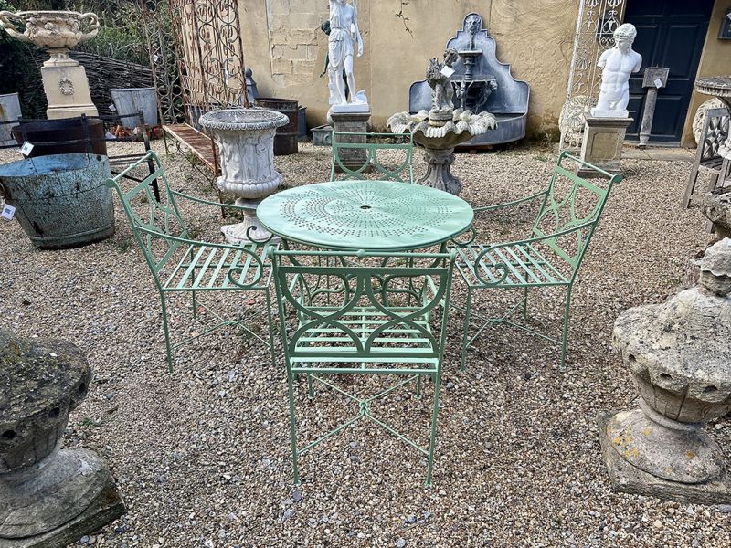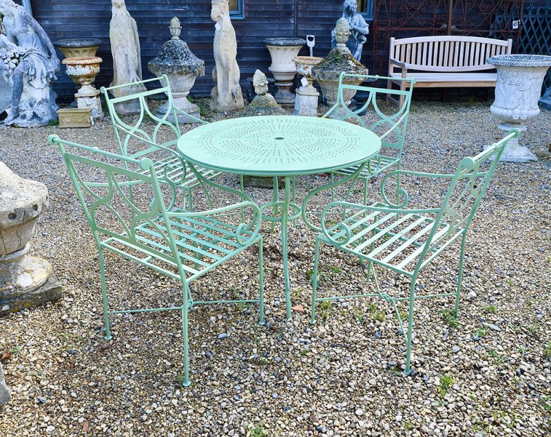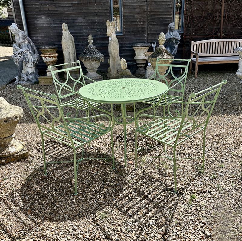 A set of four metal scroll chairs with our one metre pierced top table in this lovely green. A really fresh 'pop'.