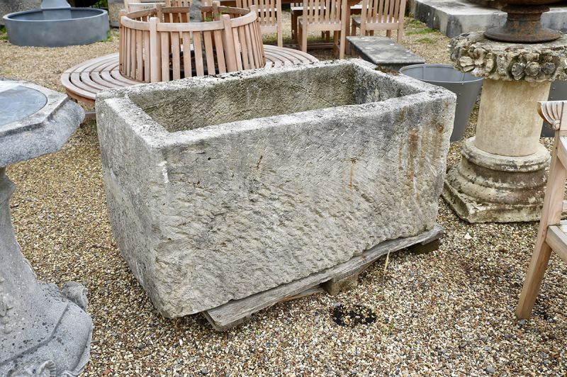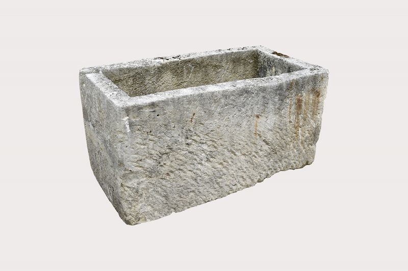 Charming mid-sized, 18th century, hand carved trough with prominent carving striations to the front.