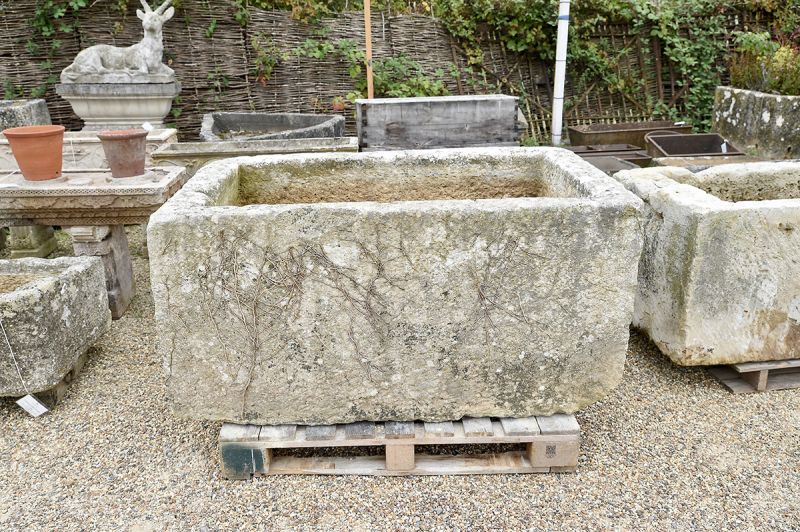 A fine example of the classic hand carved French limestone trough from the 18th Century. It has a drainage hole which can be blocked with ease should it be used as a water feature.