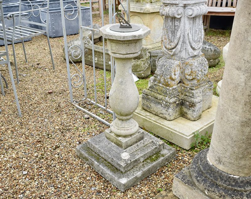Hexagonal top with flat plate and simple balustrade shaped column on well weathered square stepped base. A lovely, well priced, gift for someone.