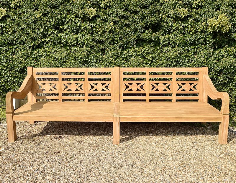 A 3.4 metre super large teak bench / daybed made exclusively for Garden Art Plus.