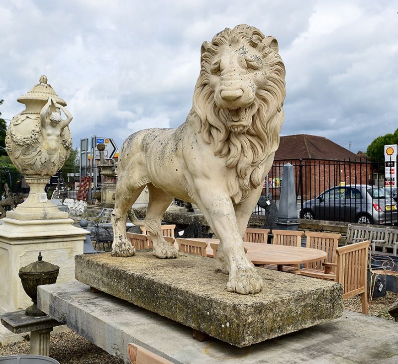 The lions are on impressive 100cm x W 75cm x H 18cm composition stone bases.