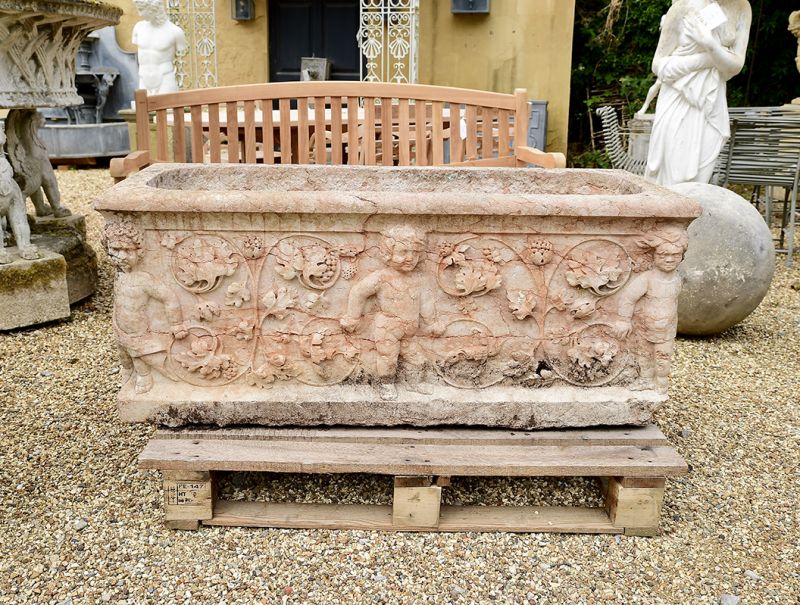 A rare carved trough in Rosso Verona Marble dating from the Renaissance..