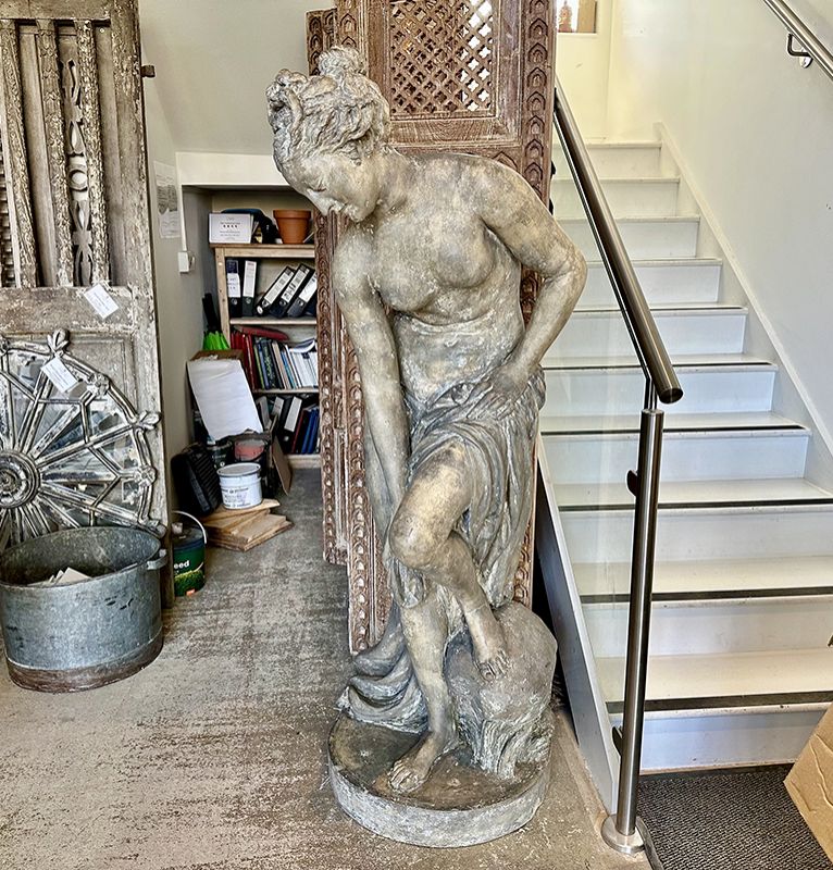An immaculate representation of a French, 19th century, life-size figure of Venus au Bain after Christophe-Gabriel Allegrain. Remarkable patination accumulated over 150 years.