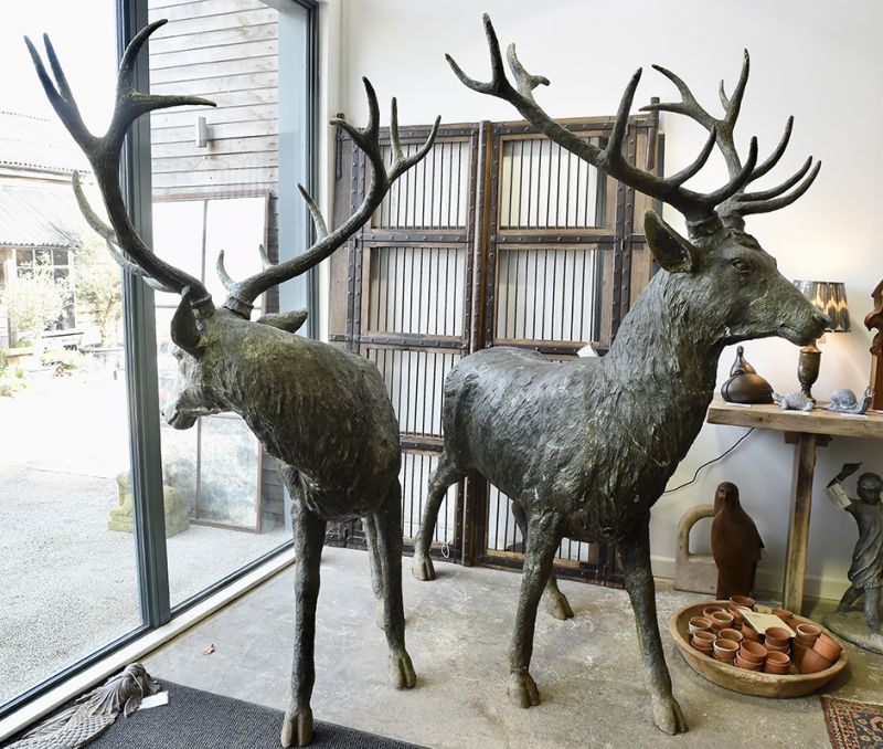 Each stag has been separately cast with great variety. One glancing left and one over his right shoulder.
