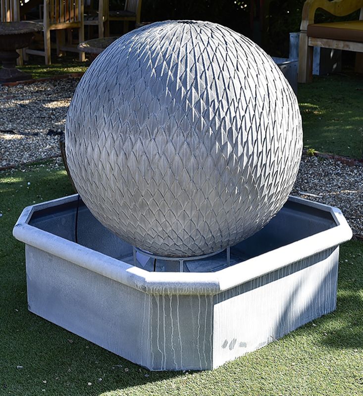 90cm zinc leaf ball water feature that would make a wonderful centre piece. It creates a tranquil sound with the water gently tumbling in to the decorative pool.