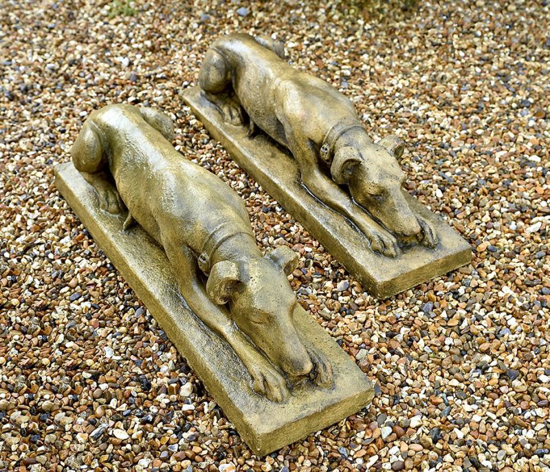 A pair of sleeping whippets made from reconstituted stone. Please enquire.