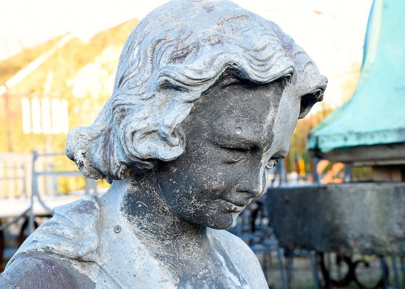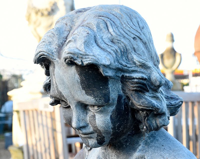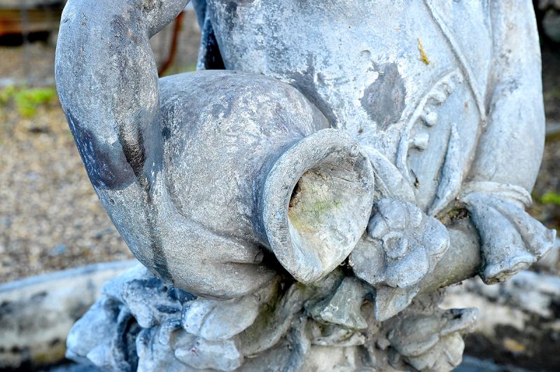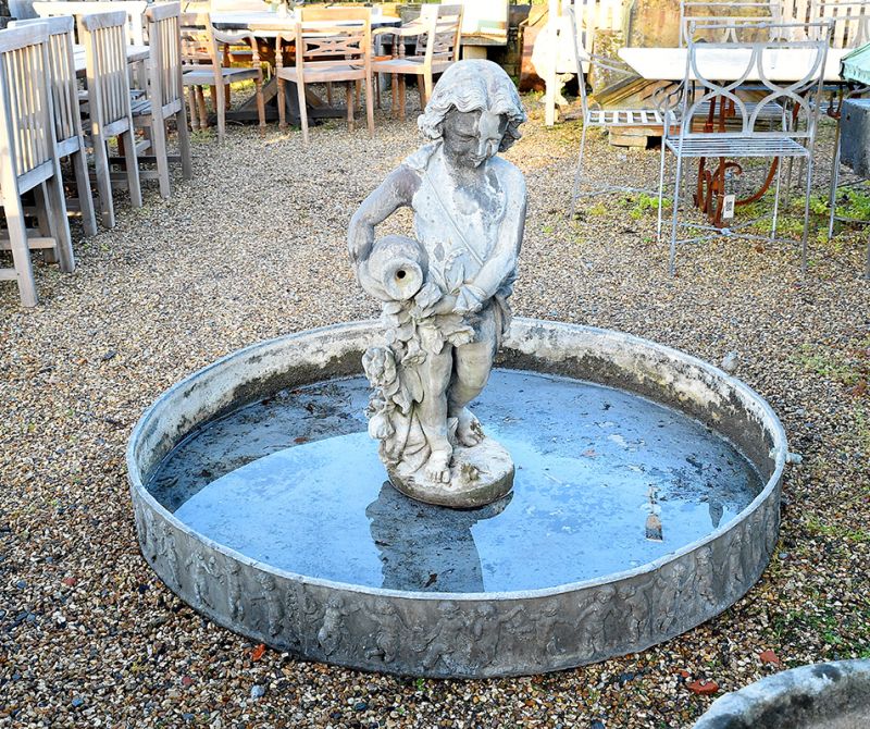 A rare English Lead pool with a young water carrier, possibly Hebe, fountain piece. Circa 1920, The Bromsgrove Guild (1898-1966) was founded based on the Arts and Craft movement. They gained many high profile commissions including the gates of Buckingham Palace .