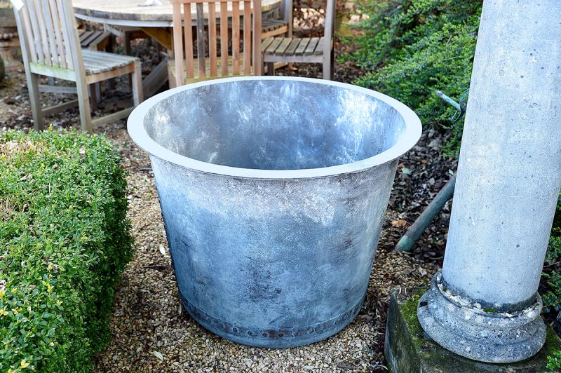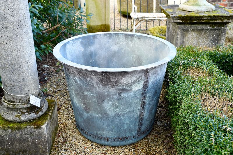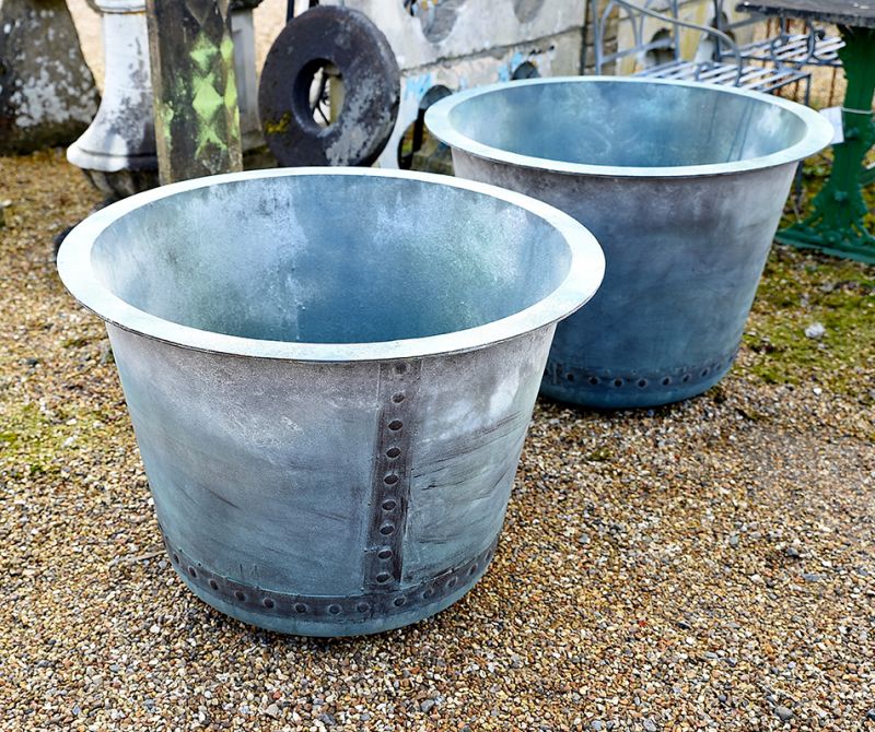 Made from metal with a verdigris copper finish. Wonderfully strong & versatile. They can be drilled with holes for planting or be left and used as wonderful water features. In stock.