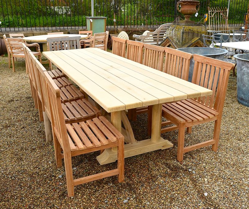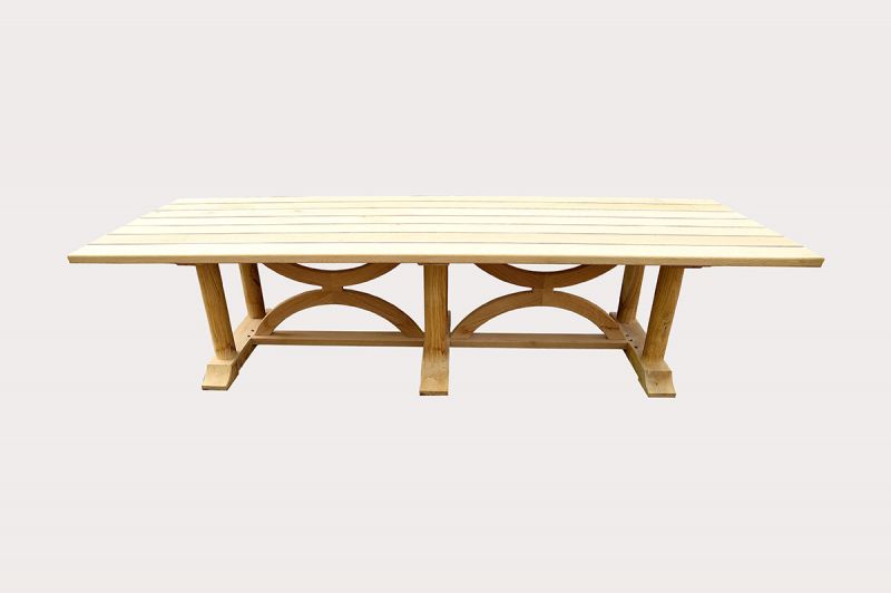Hand made oak table with unique arched base. Beautiful, made to last from kiln dried oak. Hand finished.