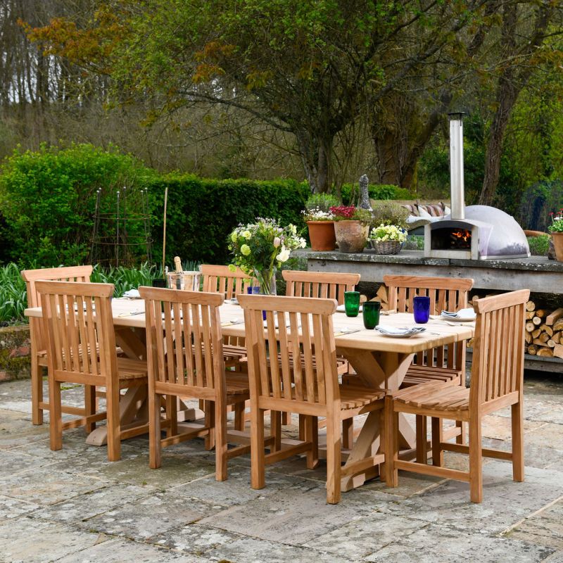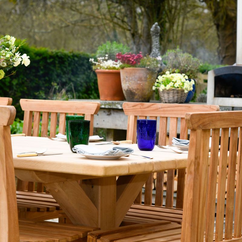 Garden Art's solid oak tables are beautifully handcrafted. This one is 2.6m in length and sits ten comfortably or a cosy twelve. We have one on display on the yard, please enquire.