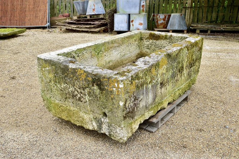 A very wide carved French farm trough with straight sides. Beautifully weathered. 18th century.