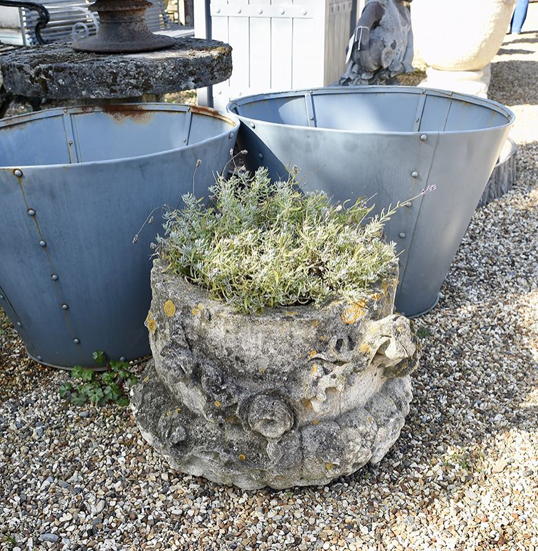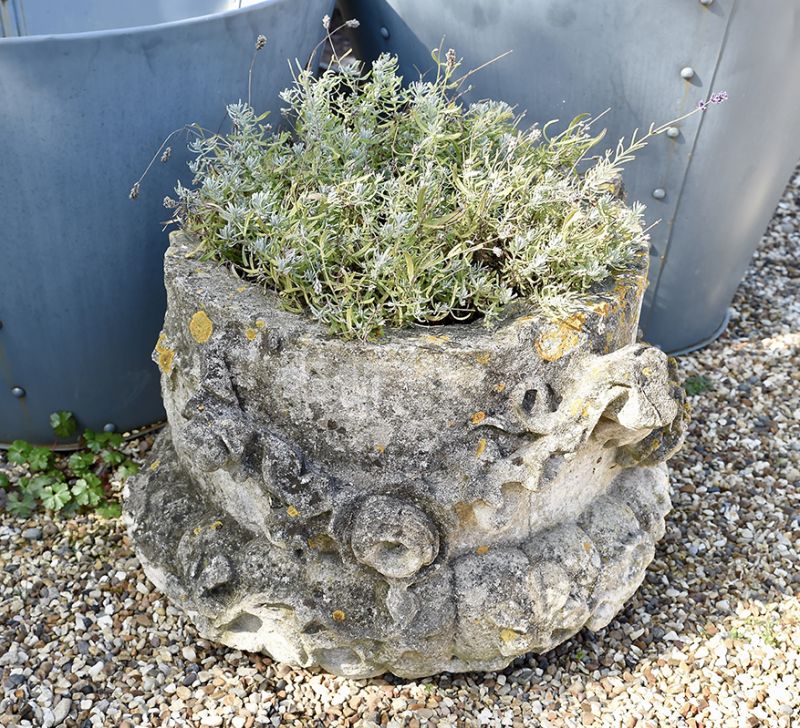 19th century, carved stone decorative planter. Fruit and garlands. Lovely colouring. A really fabulous piece.