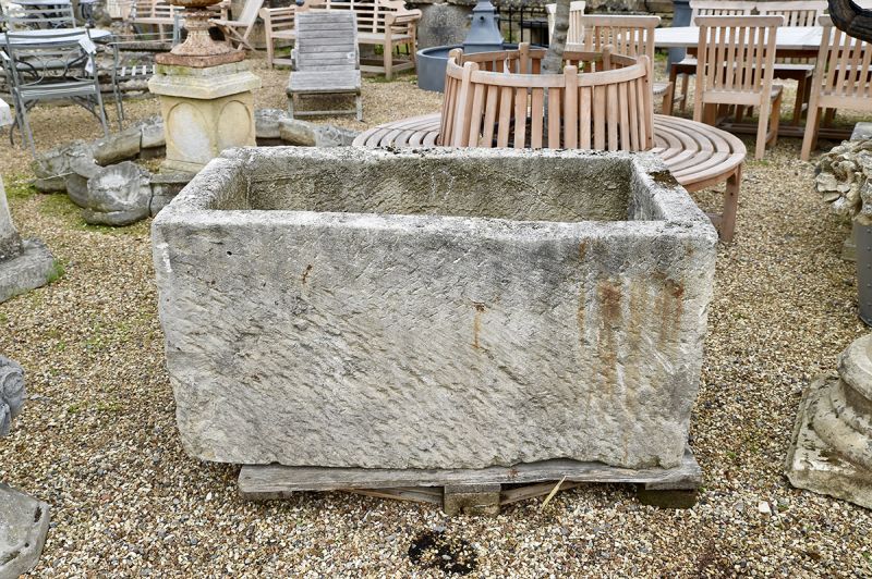 Charming mid-sized, 18th century, hand carved trough with prominent carving striations to the front.